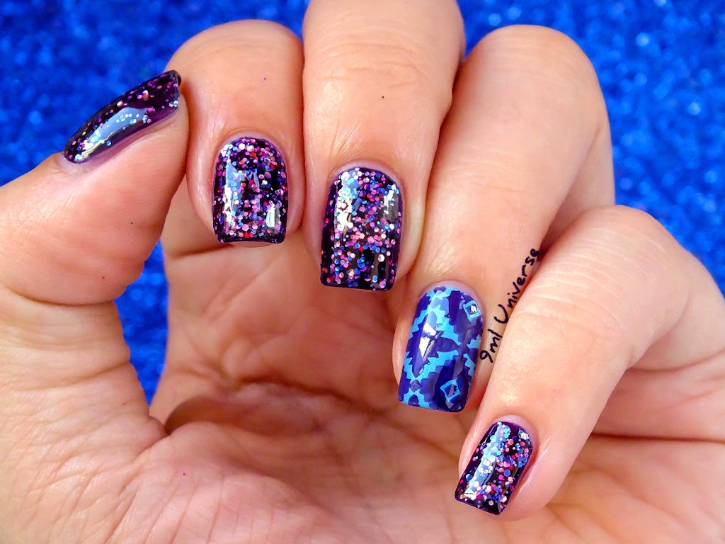 Crying Wolf is packed, and I really mean PACKED, with glitter, so it's formula is quite dense and a bit tick, but, fortunately, that doesn't make it hard to apply. I used it before, by itself, in 3 coats (no photos of that, sorry, it was a long time ago) and I think it looks best layered over a similar colour. The only complain I have about this nail polish is that it eats top coat like crazy. I had to use 3 coats of Seche Vite to smooth it out, that's just too much! As a result of that, I got some shrinkage close to my cuticles.