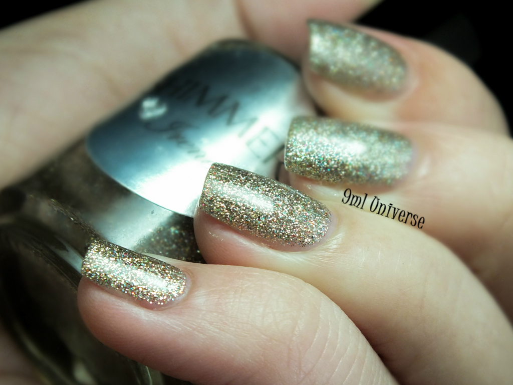 A Cindy descreve o verniz como um prateado champanhe e dourado, e eu vou-me ficar por esta descrição, porque não encontro mesmo, melhor forma de o descrever. É um pouco diferente dos que mostrei anteriormente, já que só é composto por fino micro glitter. Ainda assim, acho-o lindíssimo, e é, provavelmente, o meu preferido até ao momento.